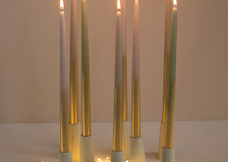 Deze tweelingkaarsen zijn met hun 38cm éxtra lang. We hebben nog een goudspray toegevoegd tot halverwege de kaars voor een feestelijke touch. Net als een echte tweeling zijn ook deze kaarsen onafscheidelijk en worden daarom alleen per paar verkocht ;-)